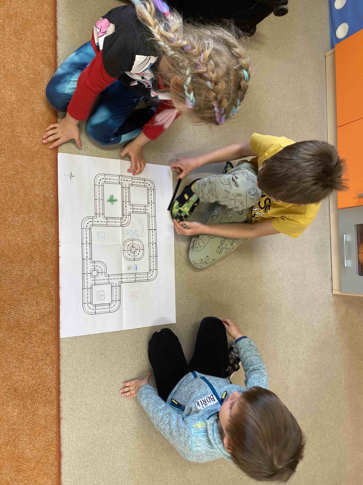 Děti se na chvíli proměnily v malé stavitele, architekty a kartografy 🏗️🧱🗺️Společně jsme si povídali o našem městě a poznávali, jaké budovy v něm můžeme najít – domy, školu, silnice, obchody i další důležitá místa 🏠🏫🛣️ Děti se učily poznávat mapové značky a zjišťovaly, proč jsou mapy tak důležité a jak nám pomáhají najít správnou cestu 🧭