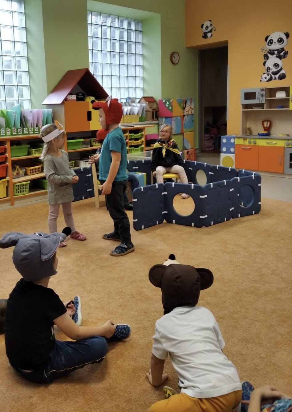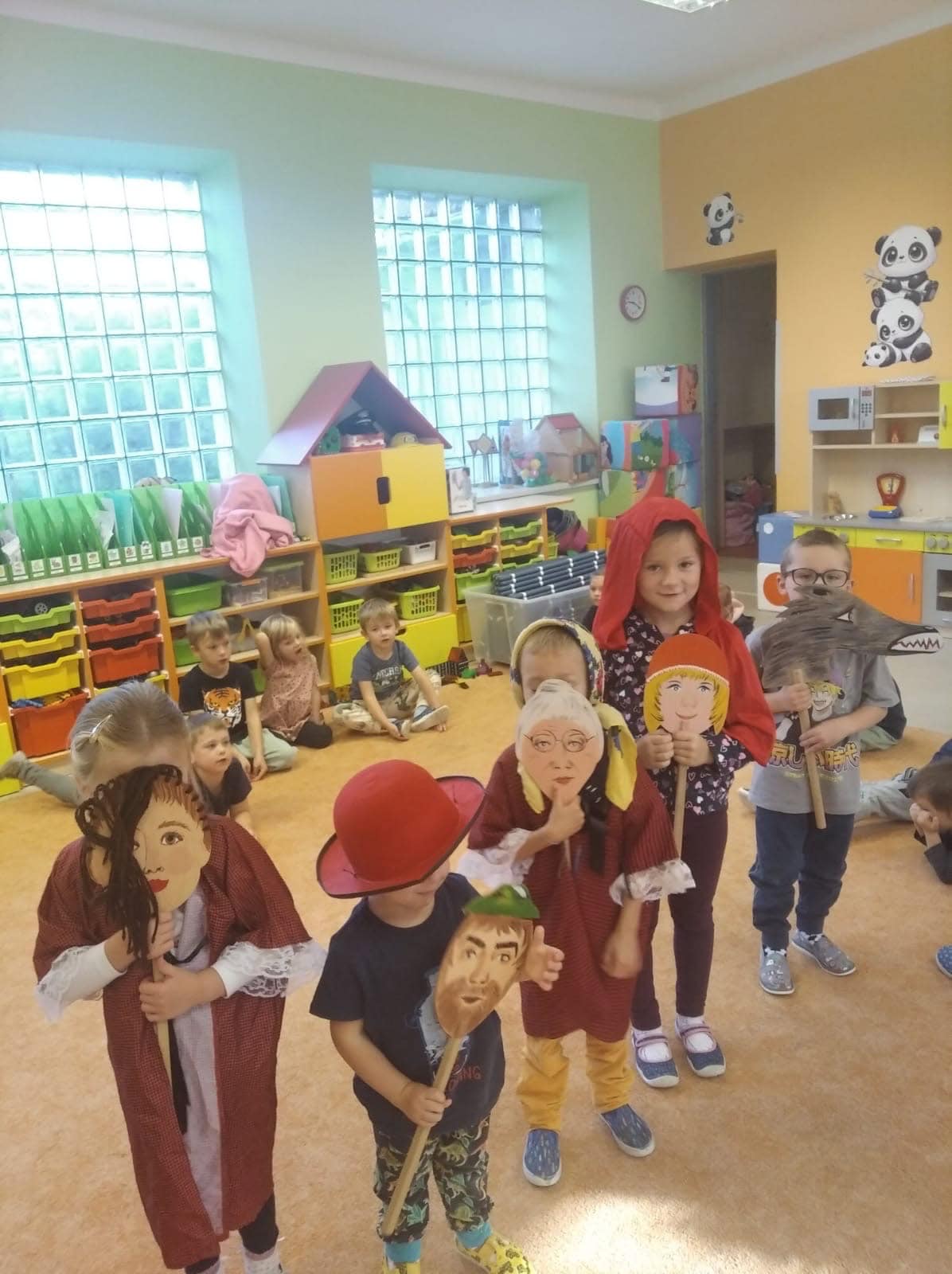Děti se proměnily v malé herce a herečky! 🎭 Společně jsme si zahráli známé pohádky O Koblížkovi, Červenou Karkulku a Boudo, budko. Děti si vyzkoušely různé role, převleky i práci s rekvizitami a nechyběl ani pořádný potlesk! 👏✨