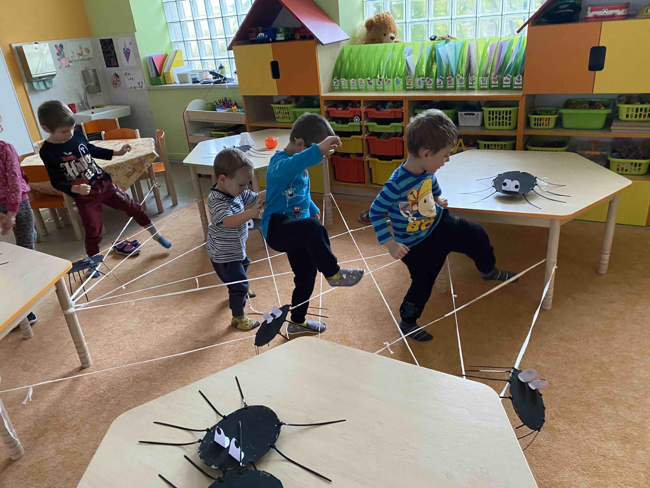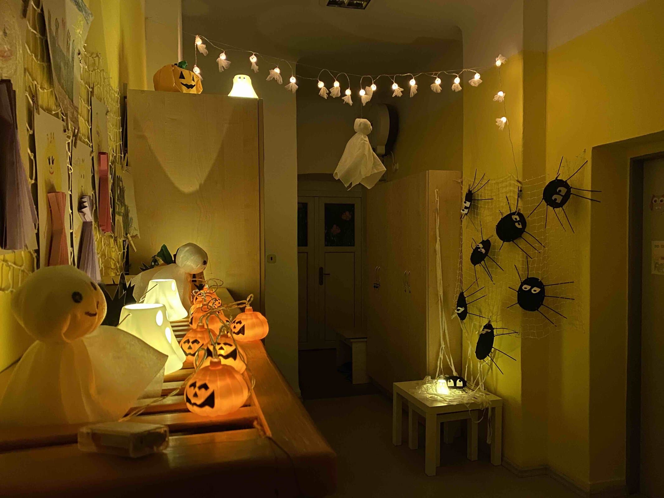 Tento týden se školka proměnila v malé strašidelné království! 🎃 Povídali jsme si o svátku Dušiček a o Halloweenu, prolézali pavoučí síť, vyráběli pavoučky a vyzdobili jimi naši strašidelnou chodbu. 🕷️ A protože strašidla mají ráda dobroty, upekli jsme si i mumiové šneky a prstíky z listového těsta – byly výborné! 👻🥐